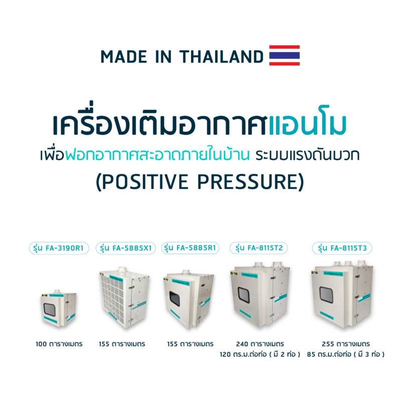 ” ผู้เชี่ยวชาญในการผลิต เครื่องฟอกอากาศเพื่ออากาศบริสุทธิ์ เครื่องเติมอากาศ ระบบแรงดันบวก (Positive pressure) ผลิตที่สมุทรปราการ “