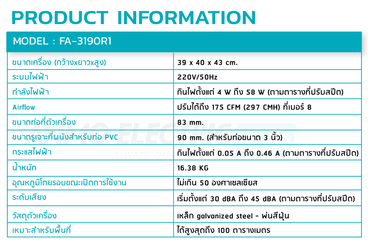 ** สินค้ารุ่น FA-3190R1 โดนฝนได้แต่ไม่แนะนำให้เปิดขณะฝนตก**
