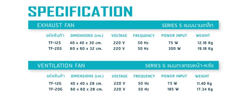 – ขนาดใบพัด 20 นิ้ว แบบตะแกรงหน้า-หลัง