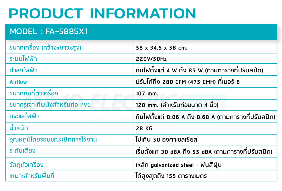 ขนาดของตัวเครื่องรุ่น FA-5885X1